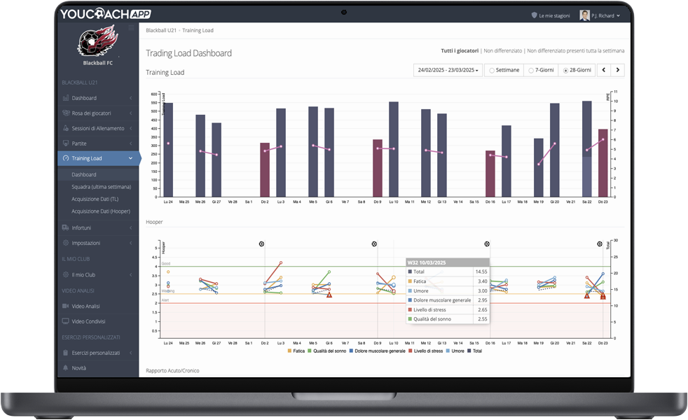 Os seus jogadores podem utilizar a app em iOS e Android para preencher questionários antes e depois do treino e do jogo, introduzindo dados de RPE e Hooper para quantificar a carga interna.