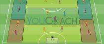 - O jogo deve passar por um dos atacantes dentro dos quadrados, eles têm que tentar perder a marcação com movimentos para antecipar a fim de receber a bola
