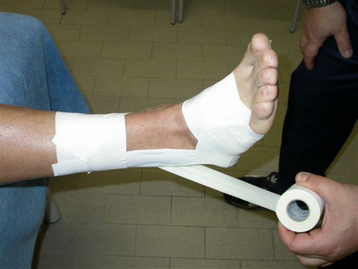A bandagem protetora é um importante aliado na reabilitação da entorse do tornozelo. Deve-se ressaltar que deve ser feito apenas por um profissional experiente e apenas em um estágio posterior (se necessário) pelo próprio jogador após o devido ensino.