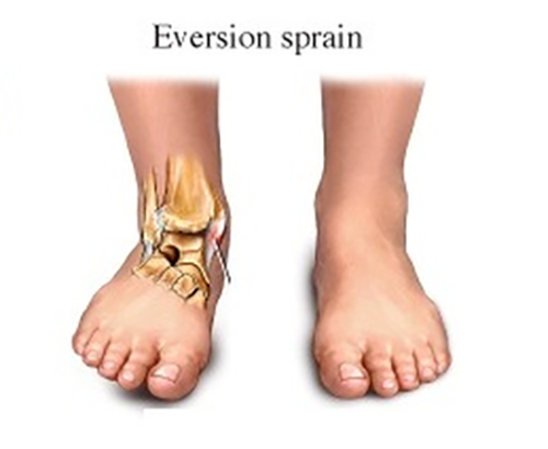 Entorse medial do tornozelo: um dano isolado do ligamento deltoide é bastante incomum, porque é muito forte e o maléolo tibial é relativamente frágil. De fato, um dano a este osso deve ser suspeitado em primeira instância em caso de entorse de eversão.