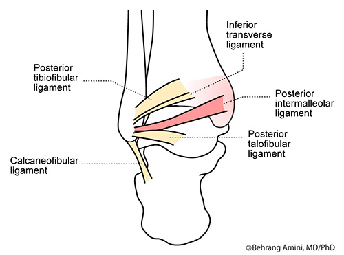 - Sindesmose Tibiofibular: Este termo descreve a articulação tibiofibular distal, ou seja, a articulação que une a tíbia e a fíbula imediatamente acima do tálus. Esta é uma articulação ligeiramente móvel, bem estabilizada por vários ligamentos, incluindo ligamentos intraósseos, ligamentos tibiofibulares anterior-inferior e posterior-inferior.