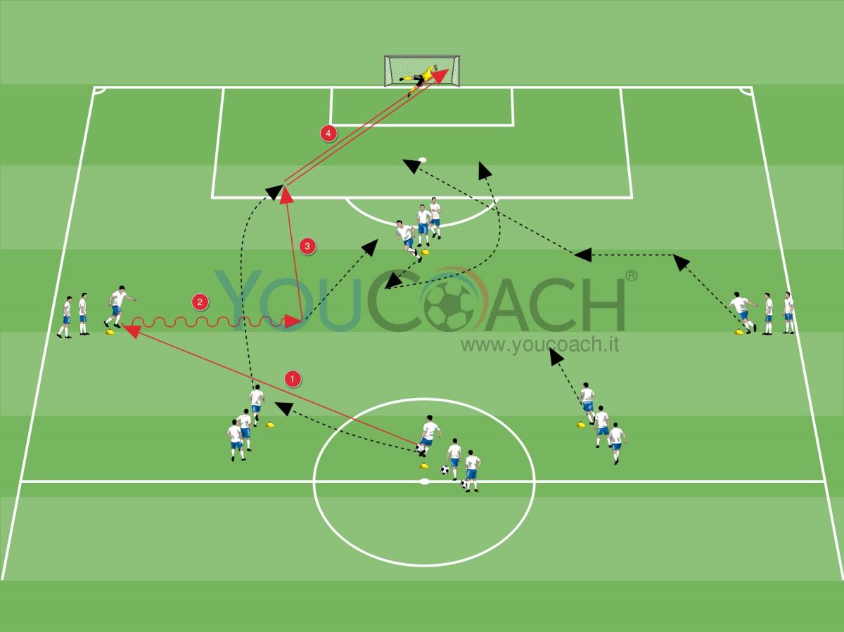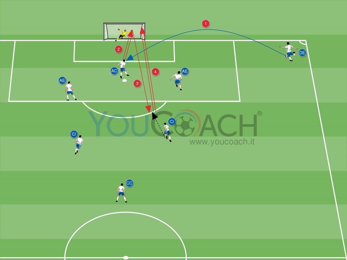 - O exercício é repetido na esquerda e na direita, sempre começa com o goleiro