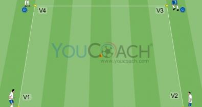 Forme um quadrado de 8x8 metros usando os marcadores. Coloque um cone no centro do quadrado. Os jogadores ficam nos cantos do quadrado (um jogador para cada canto). Um jogador (A na figura) começa...Páginas