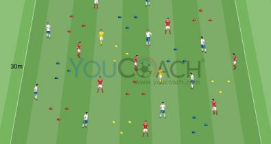 Forme um campo de 60x70 metros usando os marcadores. Coloque as balizas regulamentares nos lados mais curtos. Crie 2 zonas laterais de cerca de 10 metros L1 e L2 usando os marcadores e uma zona...Páginas