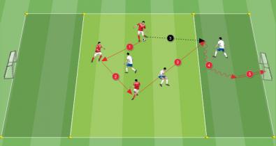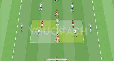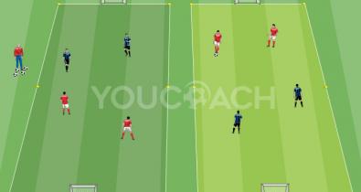 O exercício ocorre em metade regulamentar do campo.Técnica de Futebol