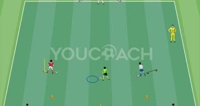 Crie um retângulo de jogo de 24x12 metros com marcadores. Divida o retângulo em dois quadrados adjacentes de igual tamanho, medindo 12x12 metros. Dentro do primeiro quadrado, coloque três jogadores...Páginas