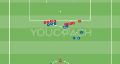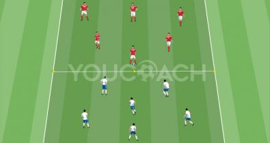 Criar dois percursos paralelos: um técnico (com a bola) e um motor (sem a bola) com remate de precisão final.Tática de Futebol