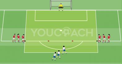 Perto da área de grande penalidade e especificamente perto do semicírculo central, em frente à baliza que vamos atacar, coloque dois marcadores (vermelhos na imagem) criando um portão em frente a ela...Notícias