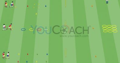 Crie um quadrado de 25x25 com marcadores. No centro de cada lado, coloque uma baliza de 1 metro. Coloque duas equipas de quatro jogadores cada dentro do quadrado. A última equipa permanece no...Técnica de Futebol