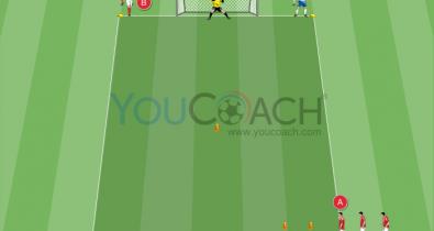 Crie um campo de jogo de 20x15 metros com marcadores e coloque um gol no centro de um lado curto. Perto do vértice do outro lado curto oposto ao gol, forme um mini quadrado de 1 metro com quatro...Tática de Futebol