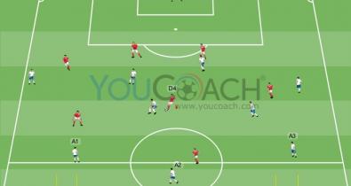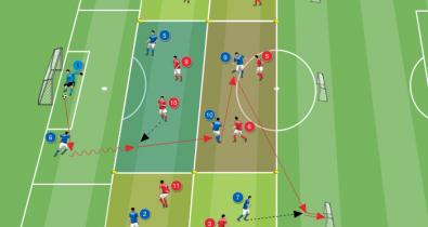 Divida o espaço desde a linha da grande área até ao meio-campo em seis zonas, com as duas centrais mais largas. Divida os jogadores em duas equipas de oito. Em cada retângulo lateral coloque um...Psicologia