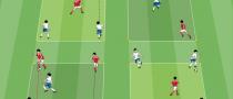 Exercício psicofísico para treinar velocidade e concentração com situação de 1 x 1 após as instruções do treinador |