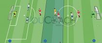 - O treinador lança uma bola dentro da área e os dois jogadores duelam numa situação de 1 contra 1 com o objetivo de rematar para a baliza lateral do adversário