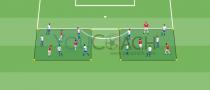- Ao sinal do treinador, os jogadores ofensivos iniciam a posse de bola simultaneamente na parte externa dos rondos, criando situações de 4v1 e 3v1