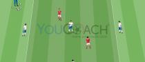 Jogo situacional para treinar o jogo em superioridade numérica explorando a largura |