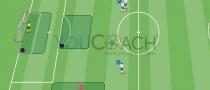 Posse de bola 6 contra 6 com desenvolvimento do jogo em amplitude