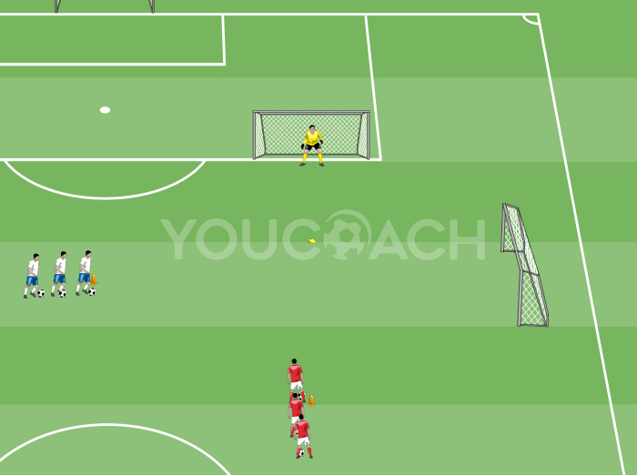 1v1 - Exercício que treina a condução de bola, 1 contra 1 e remate ao golo -