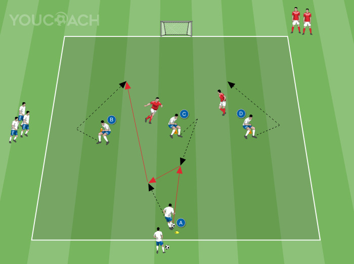 Criação de espaço - Exercício para treinar jogadores em movimentos de desmarcação para evitar a marcação adversária -