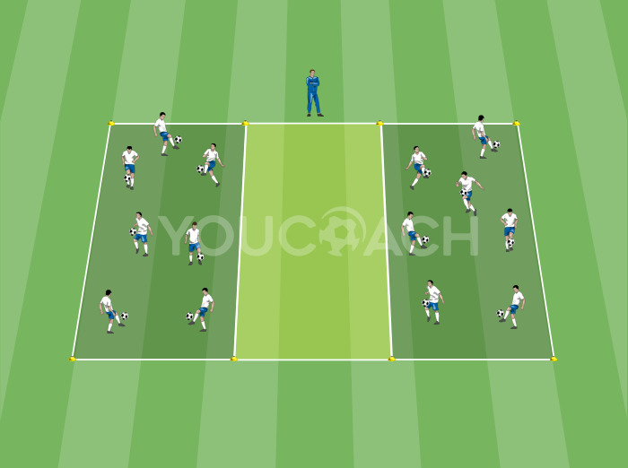 Condução de bola - Circuito técnico-motor para condução e controle de bola com situação final de 2x2 -