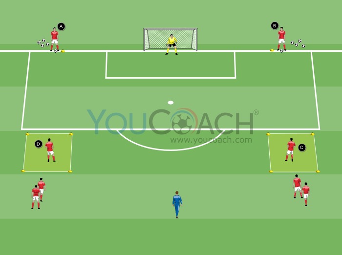 Posse de bola - Jogo de posse de bola com 4 áreas diferentes para chutar, útil para treinar vários aspectos táticos, como procurar um espaço, mudança de jogo, desmarcação e, em seguida, alguns aspectos técnicos, como chutes, bolas alçadas e cabeceios -