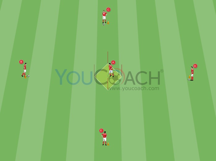 Criação de espaço - Exercício para treinar a pesquisa de espaço livre, recebendo a bola com passe subsequente -