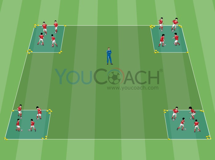 Condução de bola - Proposta de jogo para atividade básica para treinar o transporte da bola dentro de um quadrado -