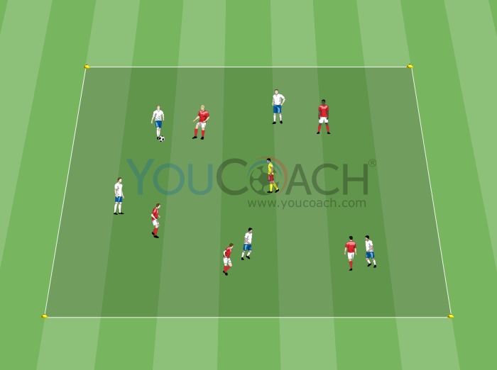 Posse de bola - Posse de bola com marcação individual e um organizador de jogo livre de marcação jogando com a equipe em posse -