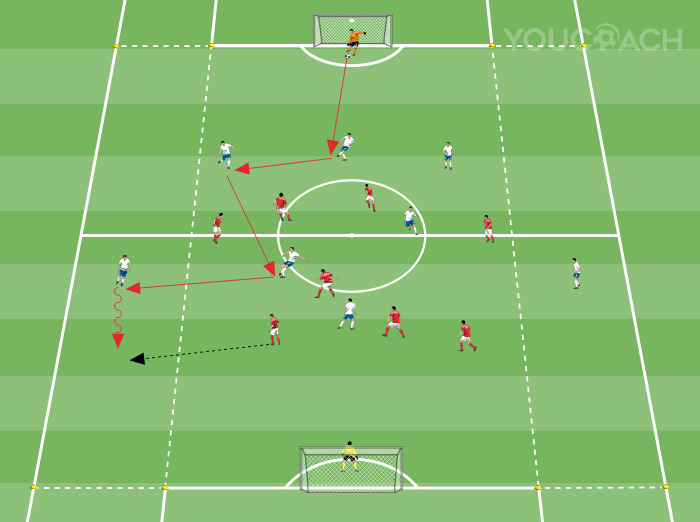 Transição - Jogo temático para treinar jogadores na marcação preventiva quando em posse da bola -