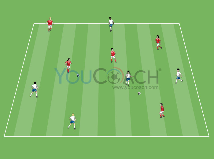 Passe - Este exercício contém uma série de passes guiados com movimento de aproximação de vários jogadores -