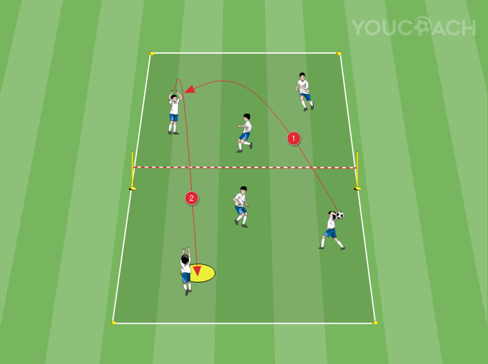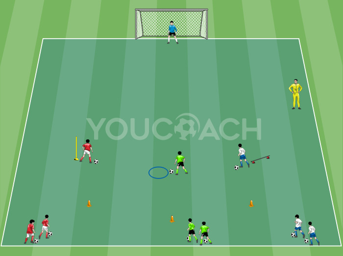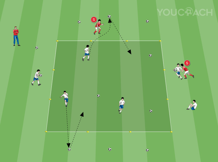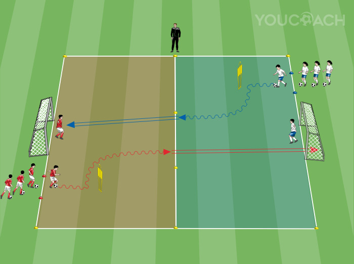 1v1 - Exercício psicofísico para treinar velocidade e concentração com situação de 1 x 1 após as instruções do treinador