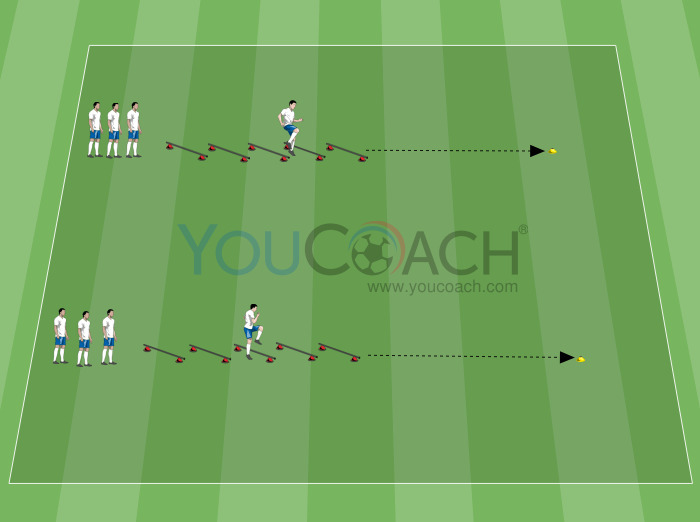 Técnico - Circuito técnico e de coordenação para treinar o controle de bola, chute preciso e habilidades de transmissão de bola -