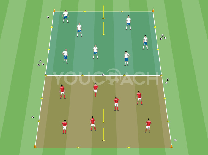Jogo reduzido: 4 contra 4 com cinco balizas