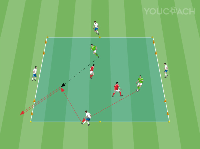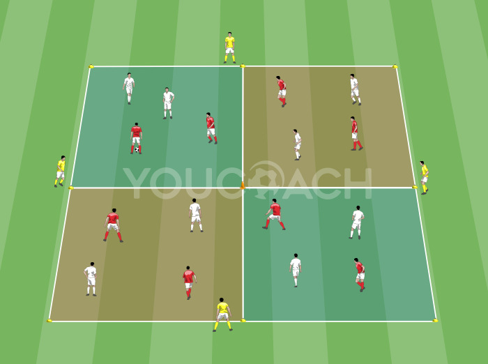 Posse de bola - Jogo simplificado 2 contra 2 + 4 jogadores neutros para treinar a posse de bola -