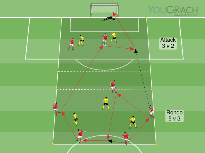 Posse de bola - Exercício de posse de bola de Mikel Arteta para treinar a superioridade no ataque e a finalização rápida -
