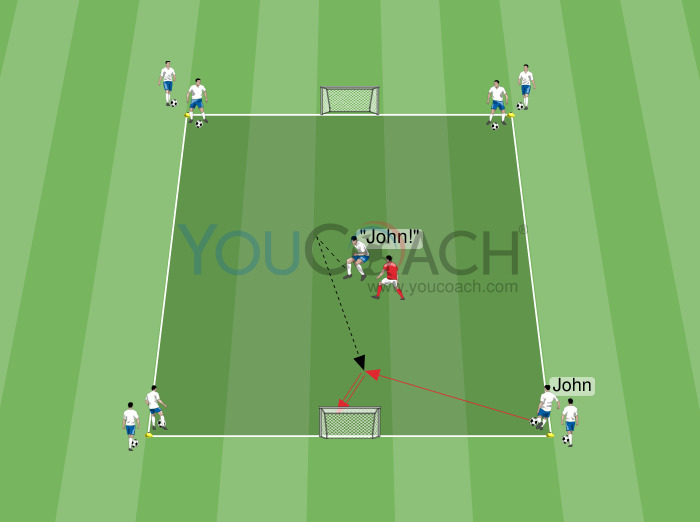 2v2 - Situação de jogo 2 vs 2 com pressão alta dos defensores para recuperação da bola -