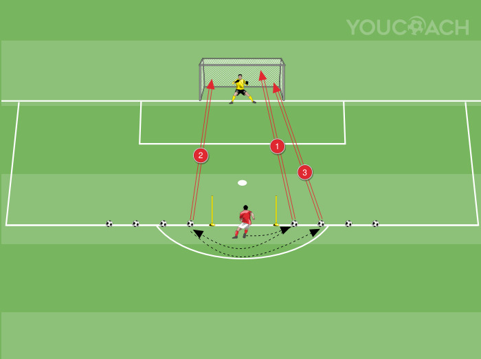 Remate - Sequência contínua de finalizações em movimento para treinar a resistência e o remate à baliza -